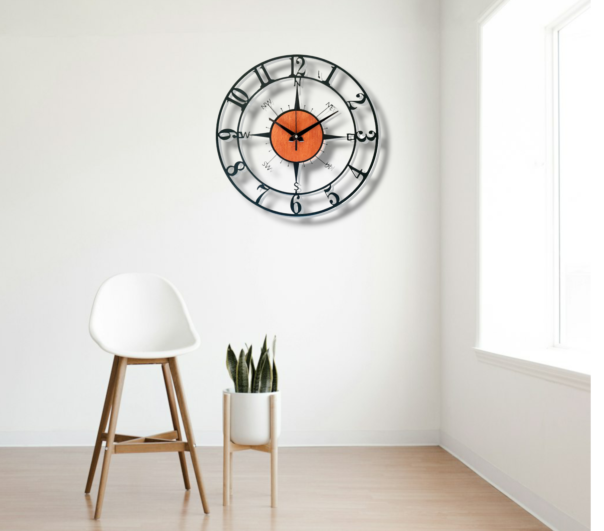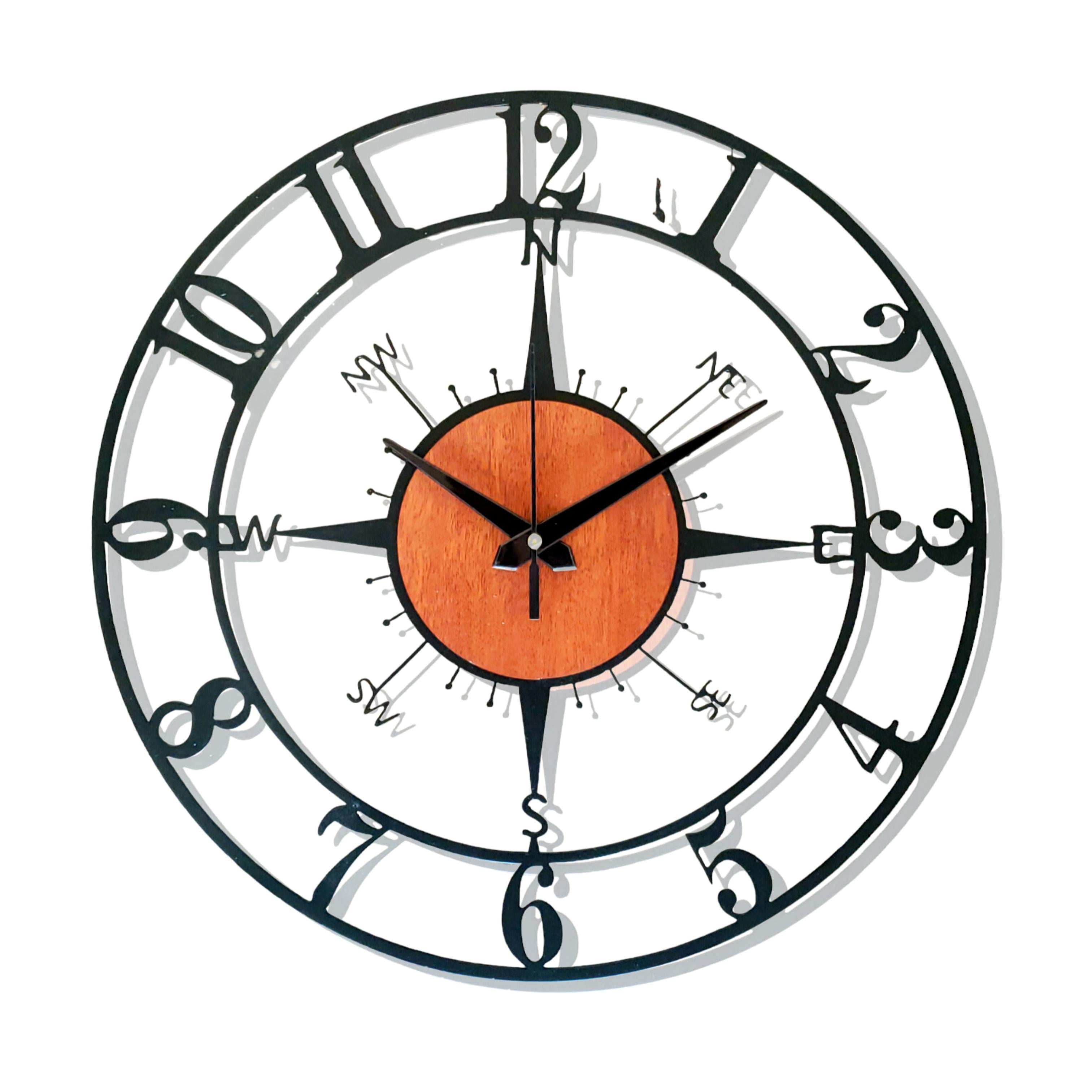 Arabs Morden Metal & Wooden Analog Wall Clock for Living Room Bedroom Office Kitchen Stylish Wall Clock for Home and Hall Designer Big Size Modern (Direction, 40 & 50 CM)