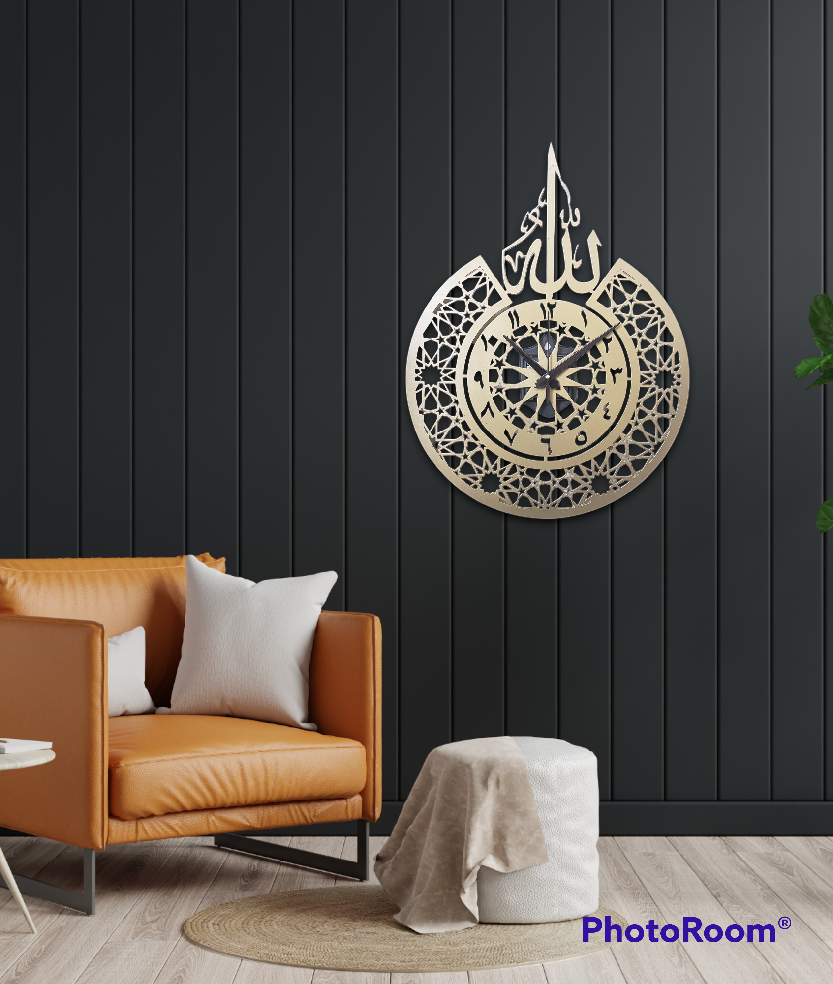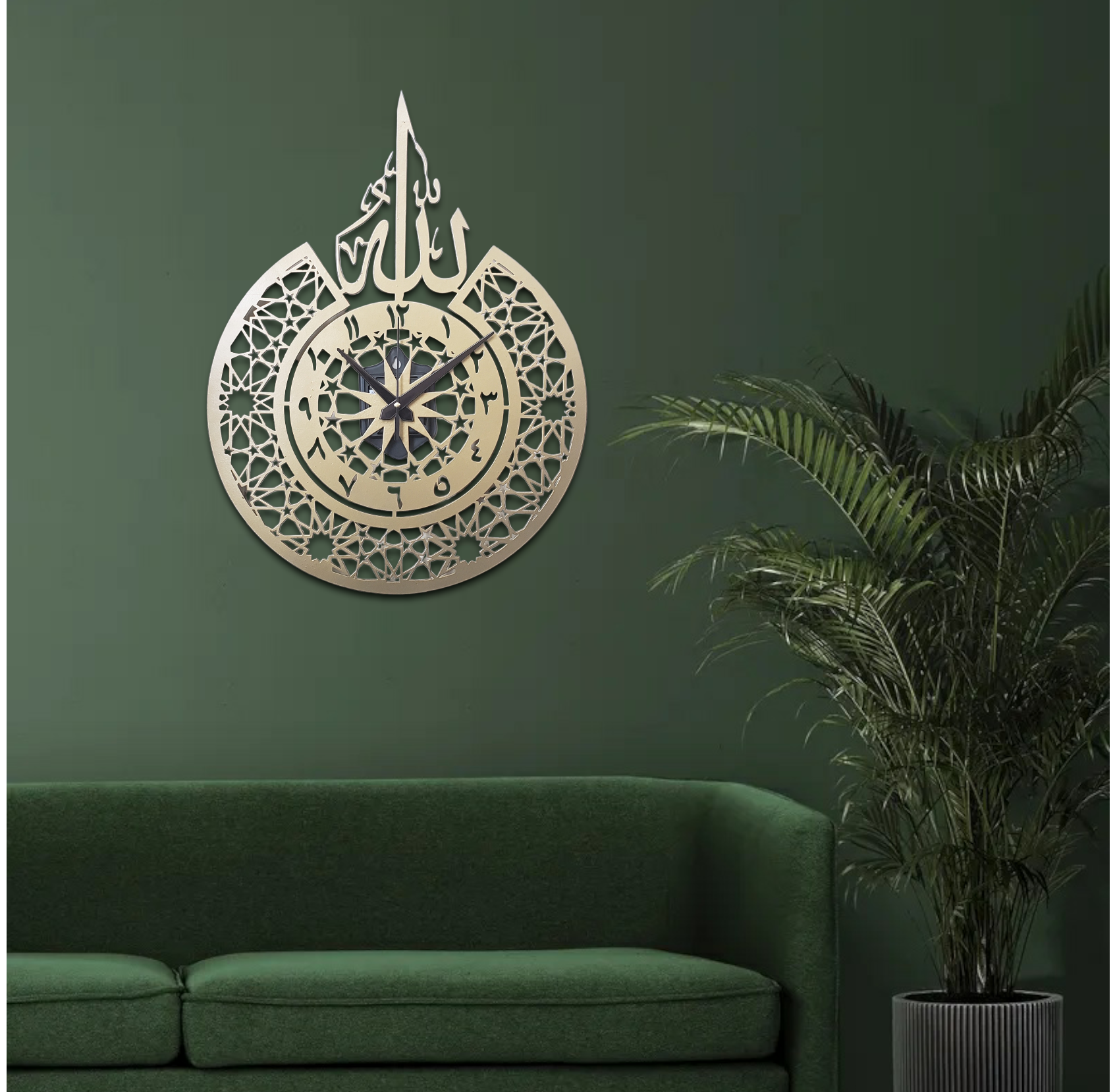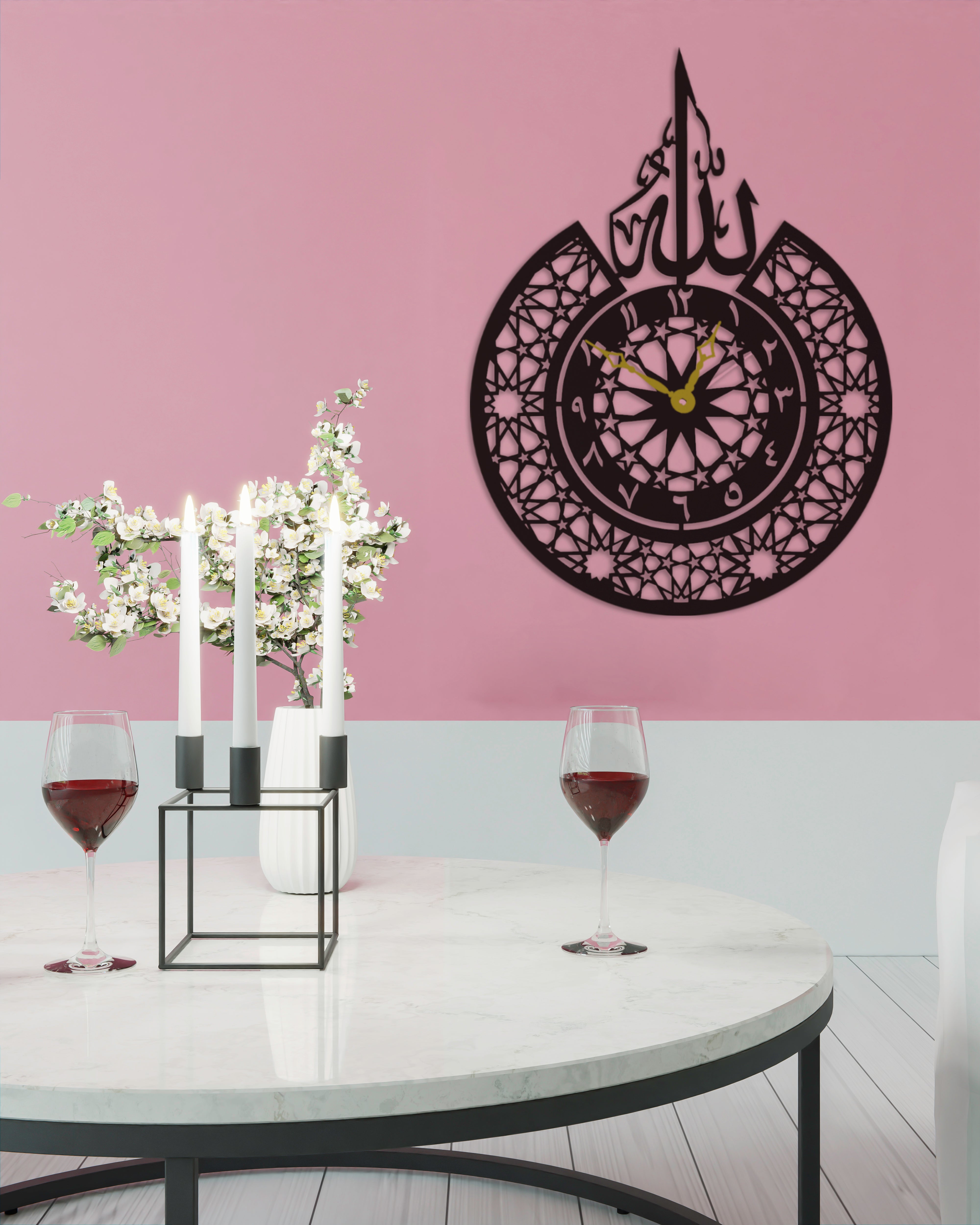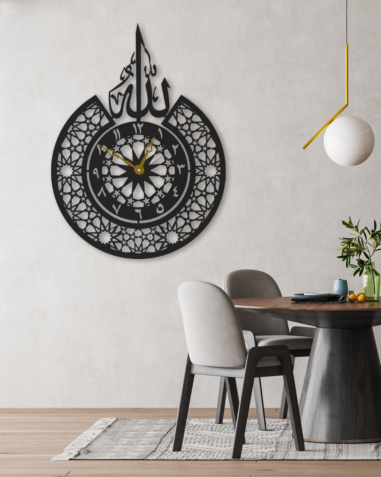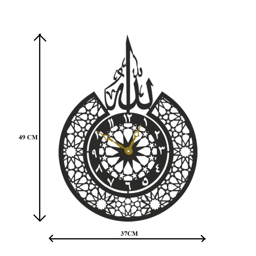 Arabs Heavy Metal Surah Al Ikhlas Metal Islamic Analog Clock for Living Room, Bedroom, Office, Home and Hall, 45 Cm X 45 Cm,Black