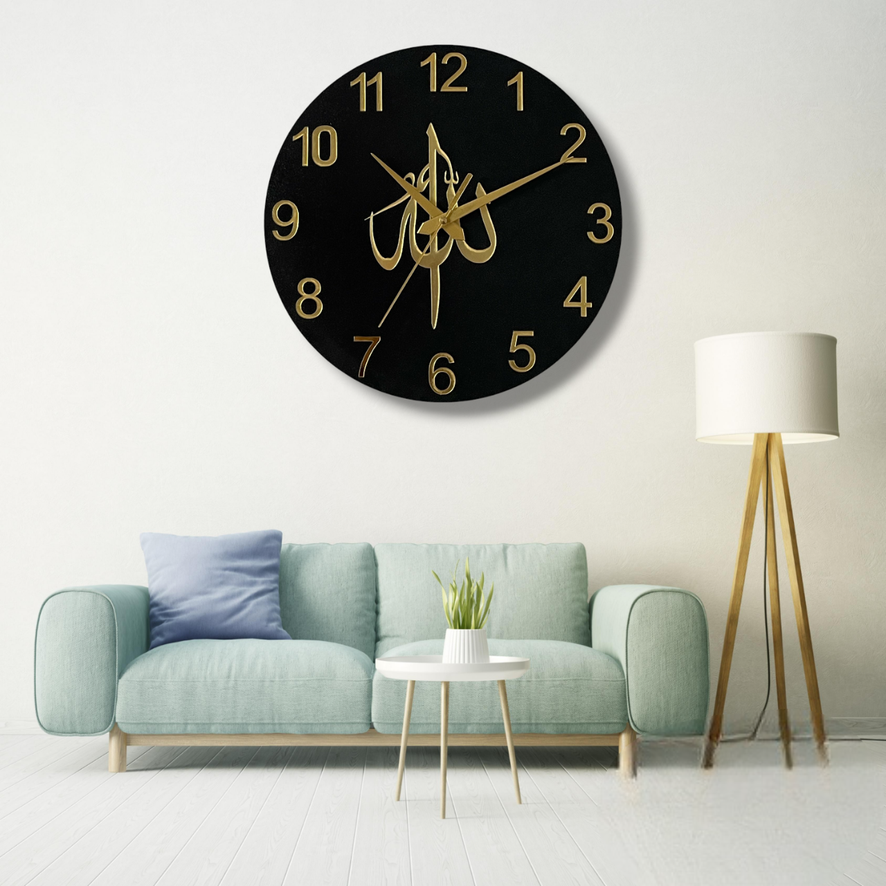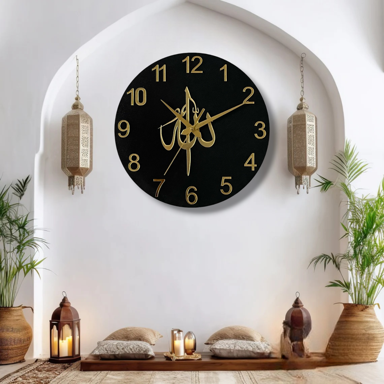 Arabs Islamic Wooden Wall Clock with Allah Calligraphy - Elegant Home Decor for Living Room, Office, and Bedroom (30, 40, 50 cm)