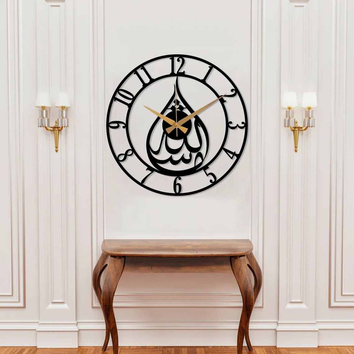 Arabs MashAllah Metal Islamic Wall Clock for Living Room | Modern Islamic Wall Art Decor | Silent Big Arabic WallWatch for Home Decor, Muslim Gifts (MashAllah, 40 , 50 CM)