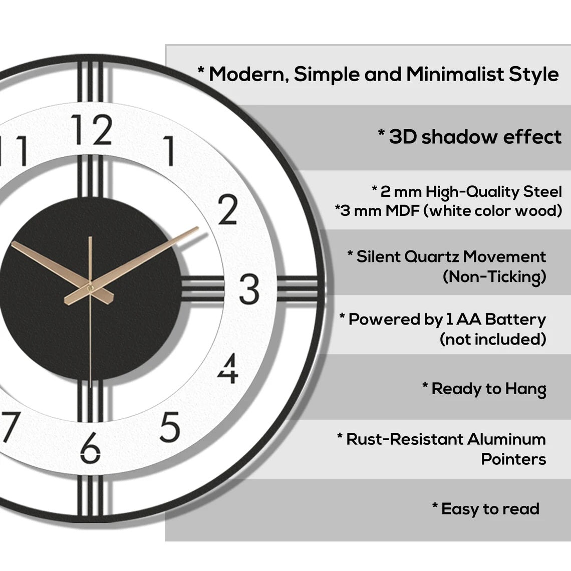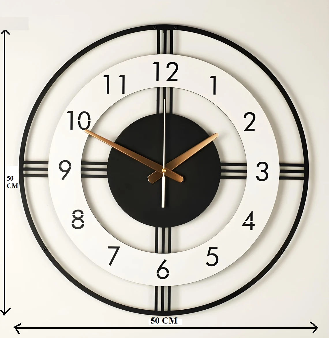 Arabs Morden Metal & Wooden Analog Wall Clock for Living Room Bedroom Office Kitchen Stylish Wall Clock for Home and Hall Designer Big Size Modern (Round White, 40 & 50CM)
